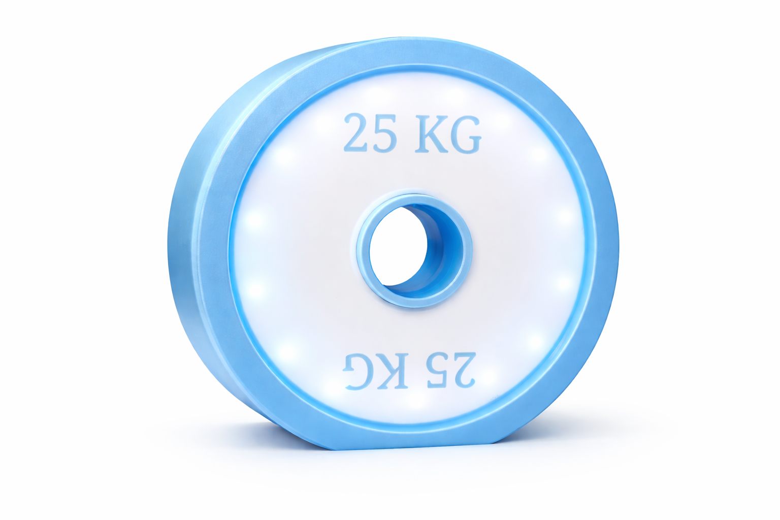 Ta wyjątkowa lampa LED w kształcie talerza treningowego 25 KG, wykonana metodą druku 3D, to idealny dodatek do pokoju sportowca, siłowni, studia fitness lub jako oryginalny prezent dla fana treningów.