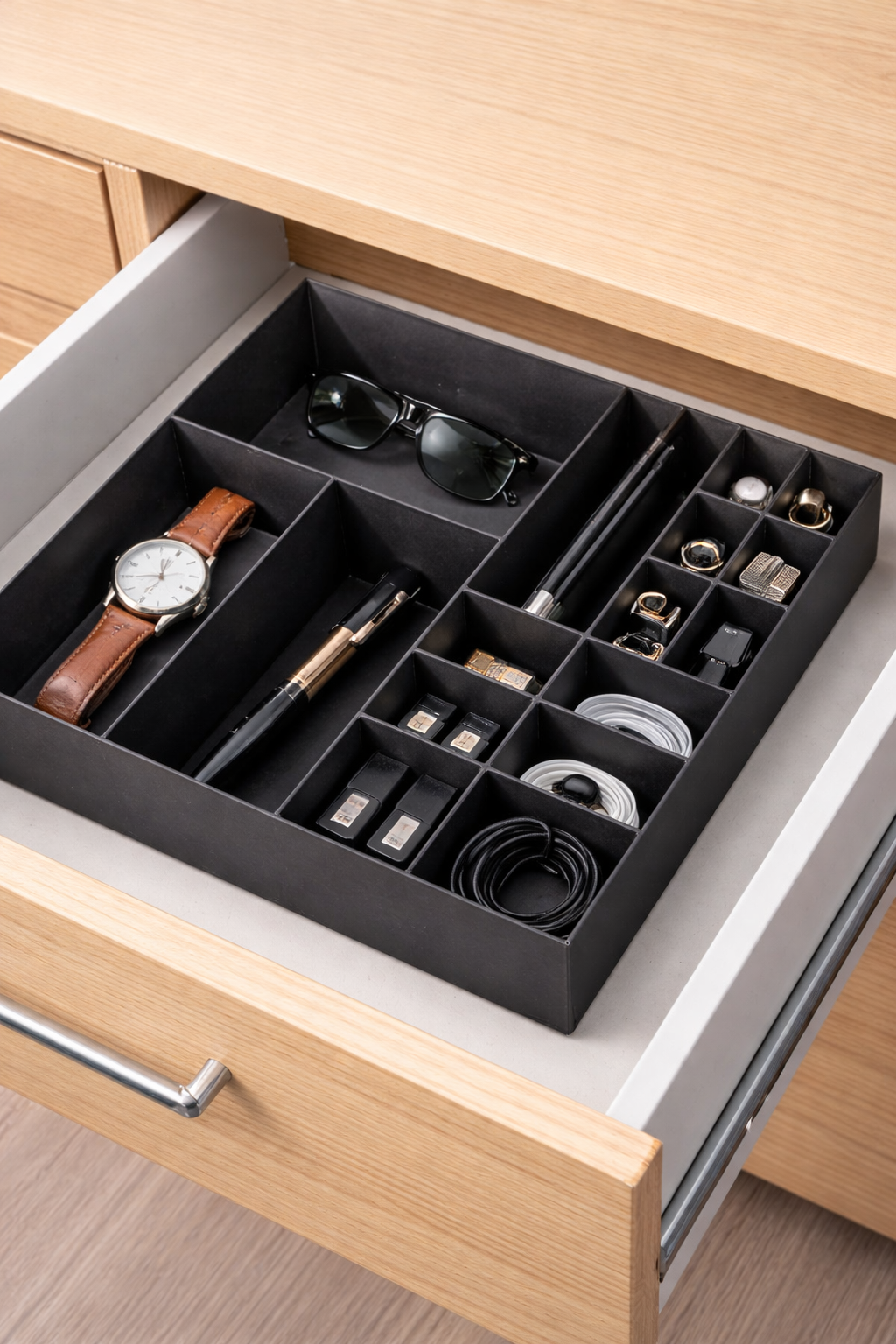 Organizer pasuje do większości standardowych szuflad i pozwala maksymalnie wykorzystać dostępną przestrzeń.